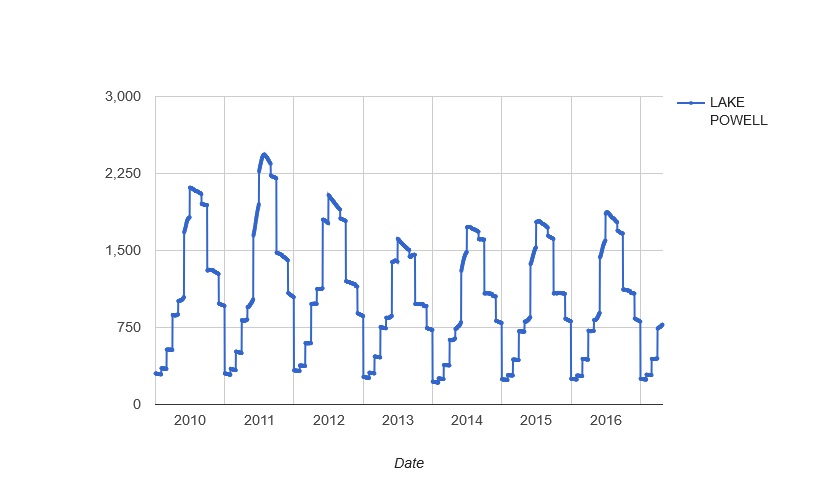 Data folks, this one is for you. Reclamation put water data for reservoirs, canals, and weather stations into one online portal. Data is available from 2010 to present. For reservoirs you can see elevation, storage, releases, inflows, and more. Here’s a graph of Lake Powell daily evaporation data.
